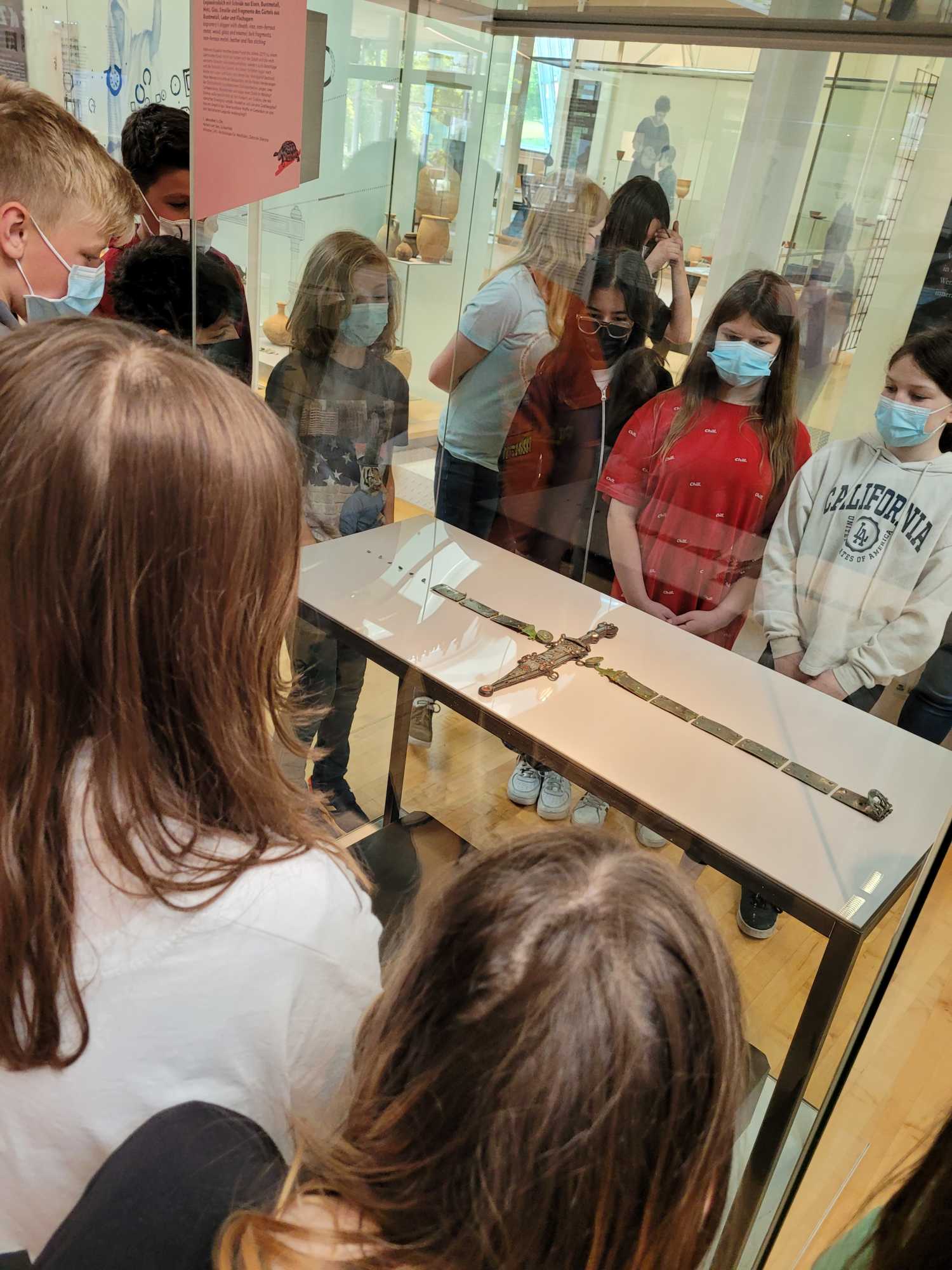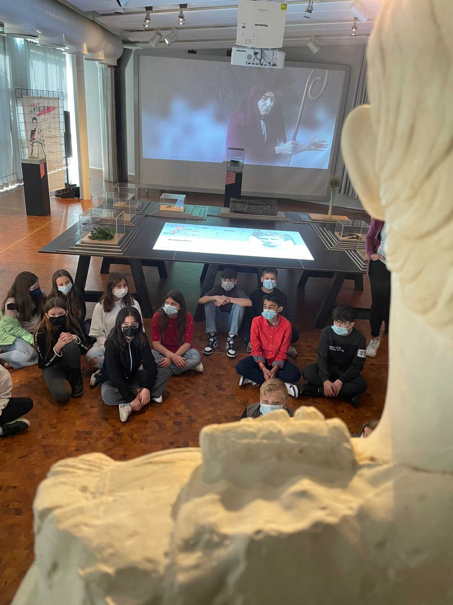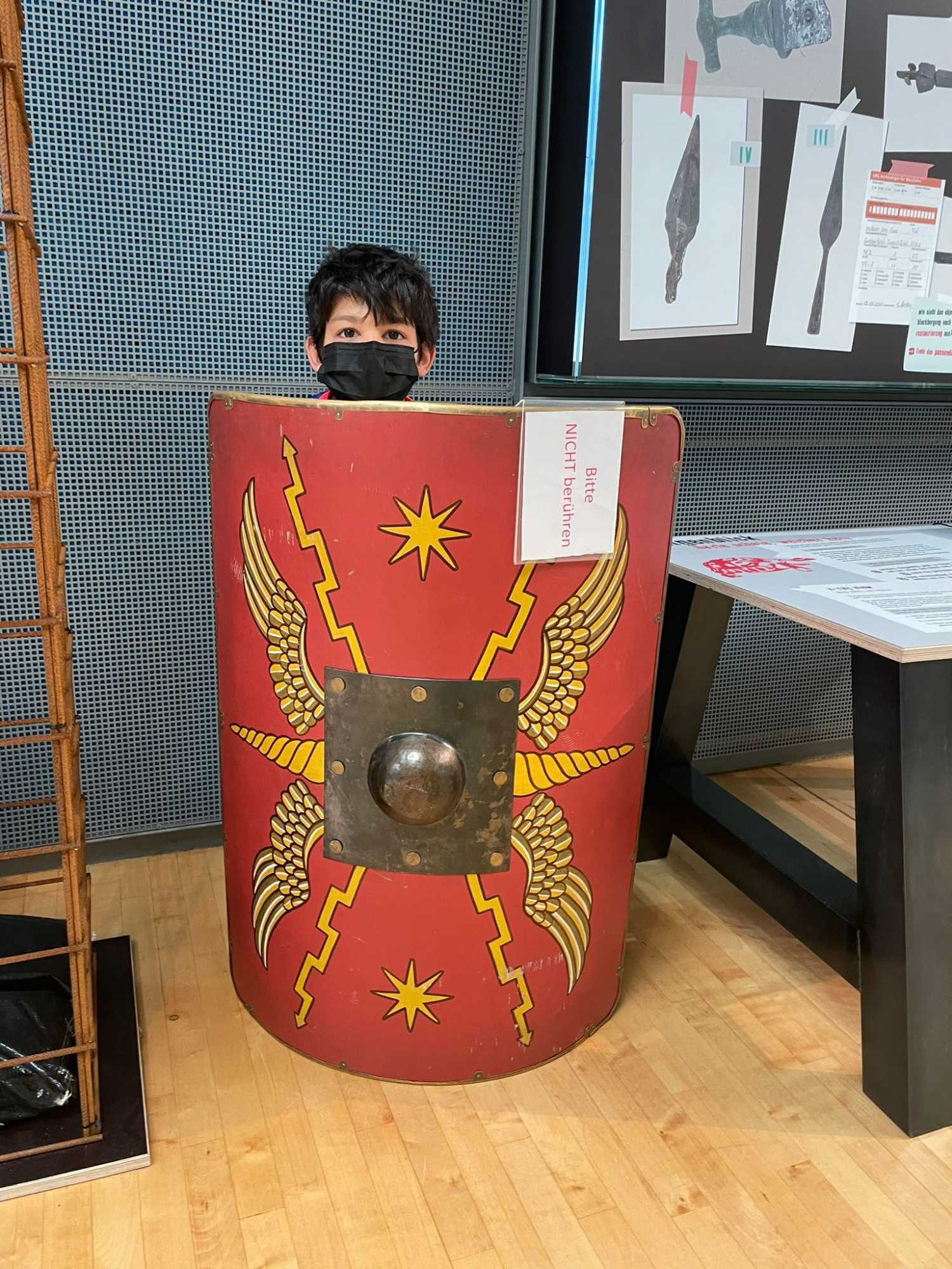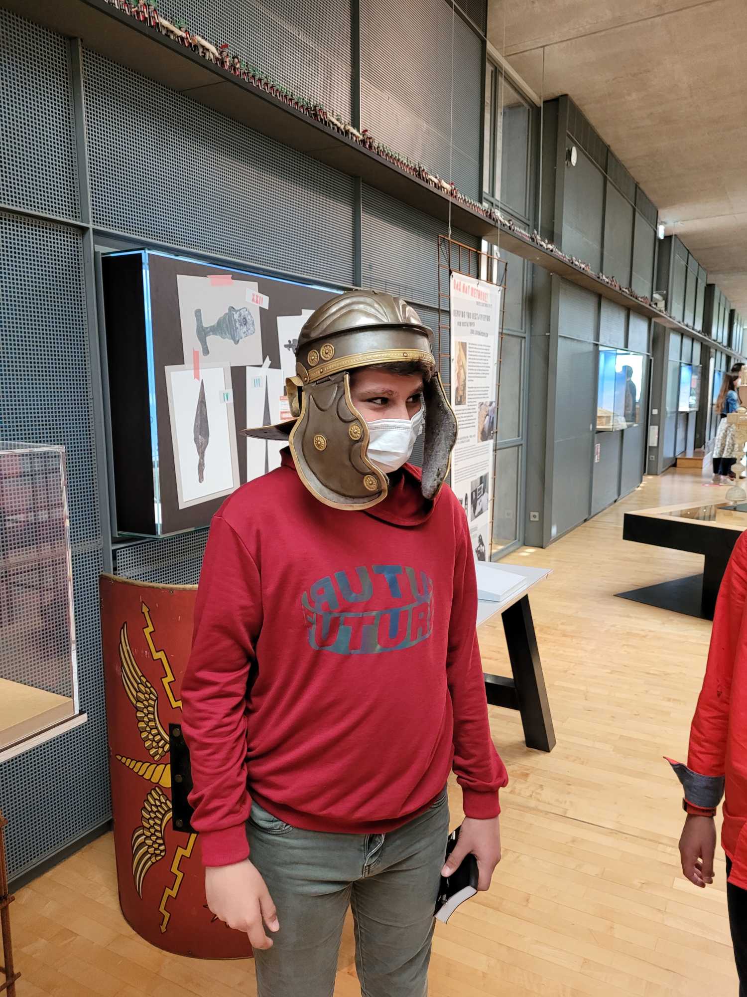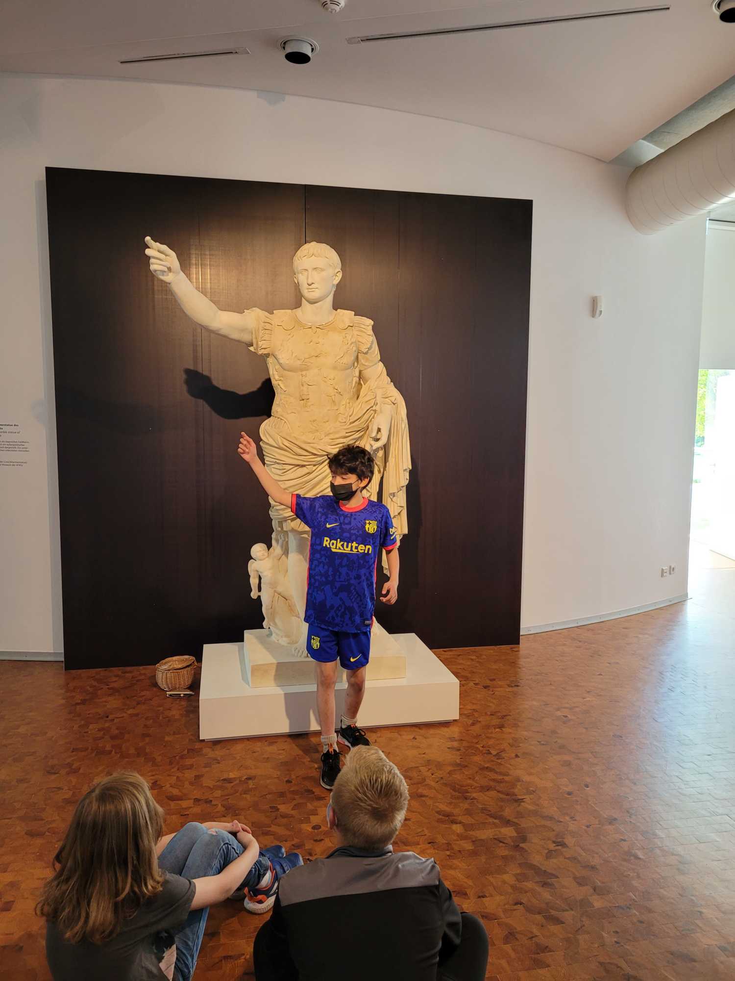 Zuvor behandelte die Klasse das Thema „Rom – vom Dorf zum Weltreich“ an Stationen im Gesellschaftslehre-Unterricht. Noch viel mehr Infos und Wissen erlangten die Schüler*innen nun durch Fundstücke und weiteres Anschauungsmaterial innerhalb einer Führung. Mit Unterstützung verschiedener römischer Personen wie dem Legionär, dem Handwerker und dem Kaiser konnte die Klasse 6.3 die Reise der Römer nach Gallien gut nachvollziehen.