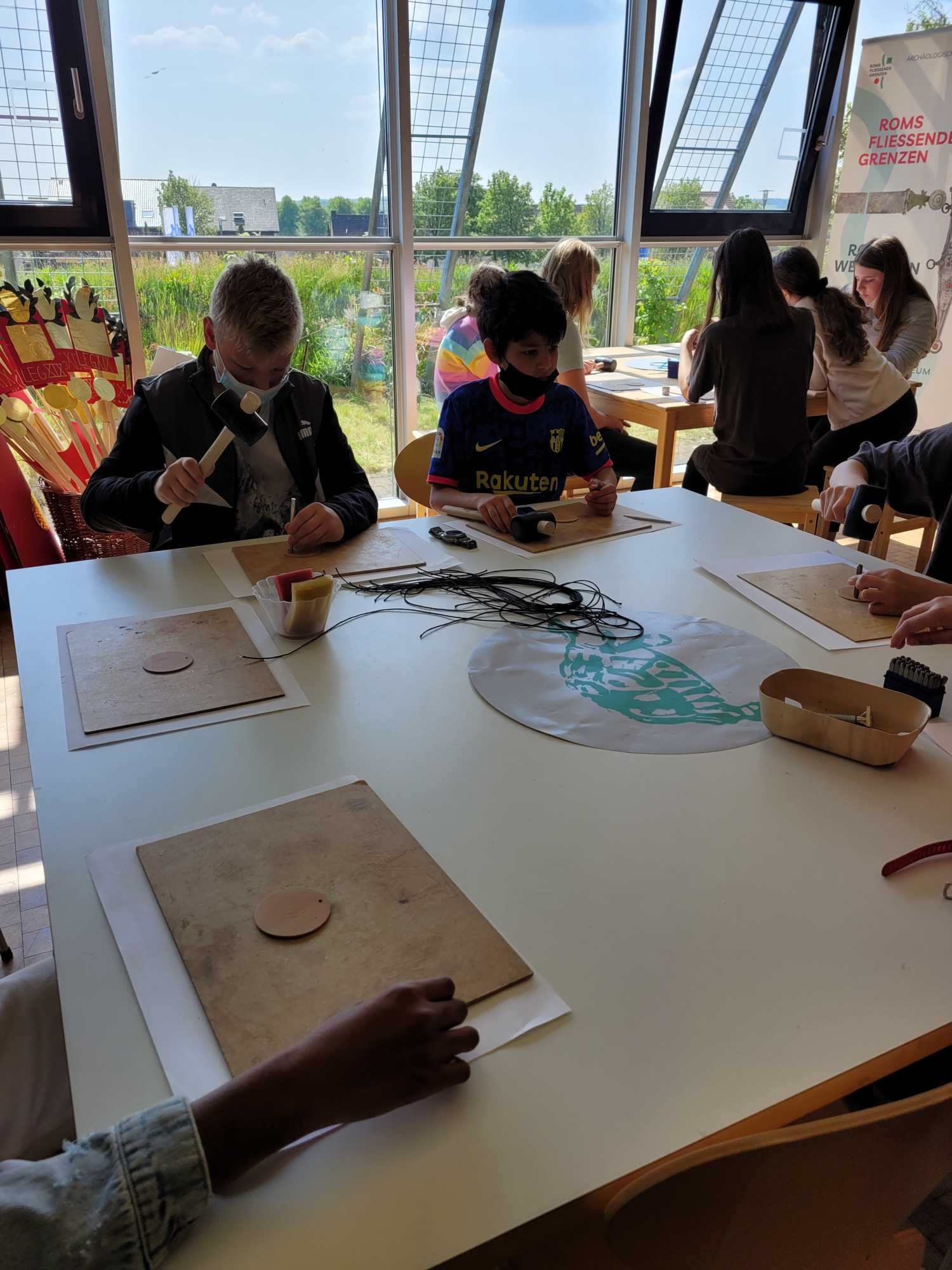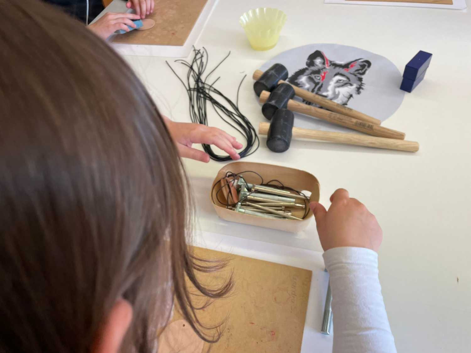 Im Anschluss an die Führung stellte jede*r Schüler*in einen Leder-Anhänger als Andenken an die Exkursion her.