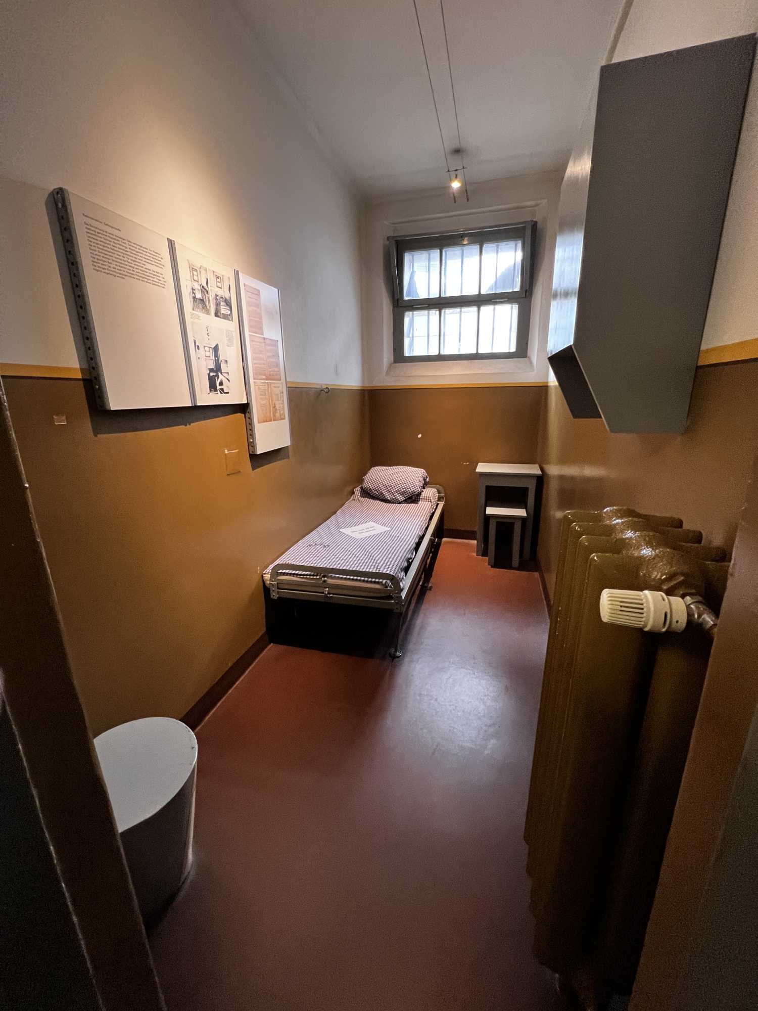 Beim Hineingehen konnten wir bereits erkennen, dass die Treppe, die drei Stockwerke miteinander verband, sich mittig im Gebäude befand. Die einzelnen Zellen waren um die Treppe herum angelegt. Die Einrichtung war nicht mehr komplett im Urzustand, wurde aber detailgetreu restauriert, sodass es sehr authentisch wirkte und die Vergangenheit gut veranschaulichte.