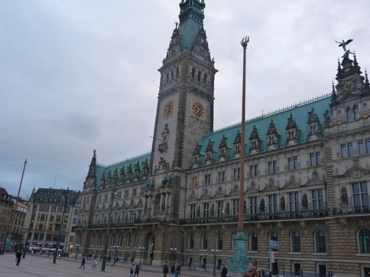 Ein weiteres Wahrzeichen der Stadt ist das Hamburger Rathaus, das fast in der Mitte der großen Stadt liegt. Ein prachtvolles Rathaus im Neorenaissance-Stil mit Gewölbegang und opulenten Räumen. Uns hat der Blick auf das gigantische Rathaus gefallen.