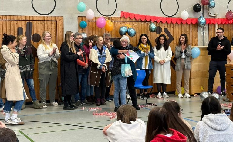 Durch ihr großes Engagement, ihren empathischen Umgang mit den Kindern und Jugendlichen und ihrer Hilfsbereitschaft bleibt sie vielen Schüler*innen nachhaltig im Gedächtnis. So antworteten Rahaf und Mujasara, zwei ehemalige Schülerinnen der Vorbereitungsklassen, am Donnerstagmorgen auf die Frage, was sie denn so früh an der Canisiusstraße machten: „Wir wollen uns von Frau Beeking verabschieden“. Gleiches taten später bei einem bunten und emotionalen Fest in der Sporthalle dann auch alle aktuellen Schüler*innen, unsere Schulleitung und viele Kolleg*nnen.