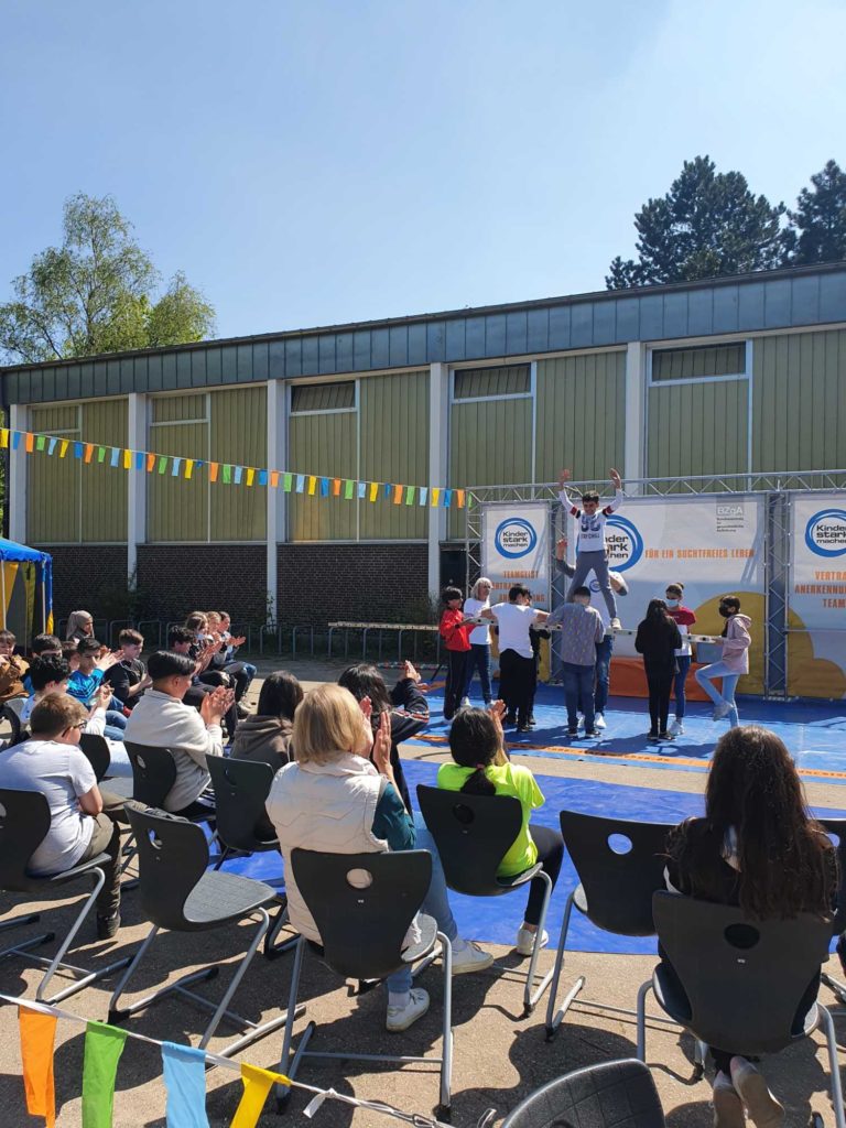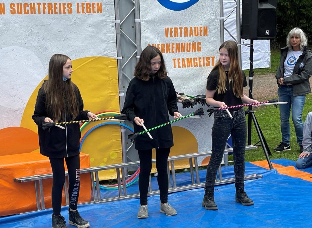 Am 1. Mai durfte dann auch die Zirkus-AG unserer Schule unter der Leitung von Lisa Kötter ihr Programm bei der Eröffnung der Ruhrfestspiele im Stadtgarten in Recklinghausen präsentieren. Dabei zeigten sie dem Publikum unter anderem ihre partnerakrobatischen Übungen, die Jonglage mit Flowersticks sowie das Balancieren von Tellern und sogar Feuertricks.