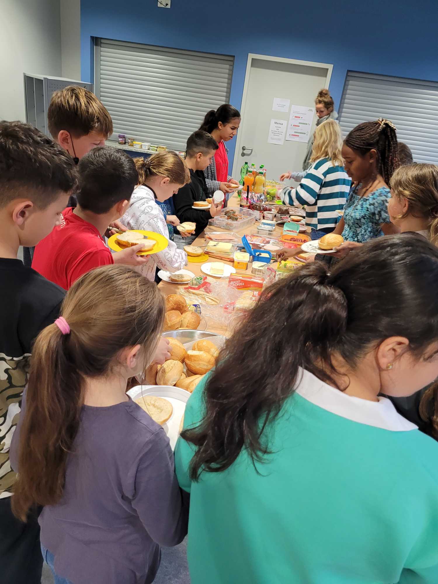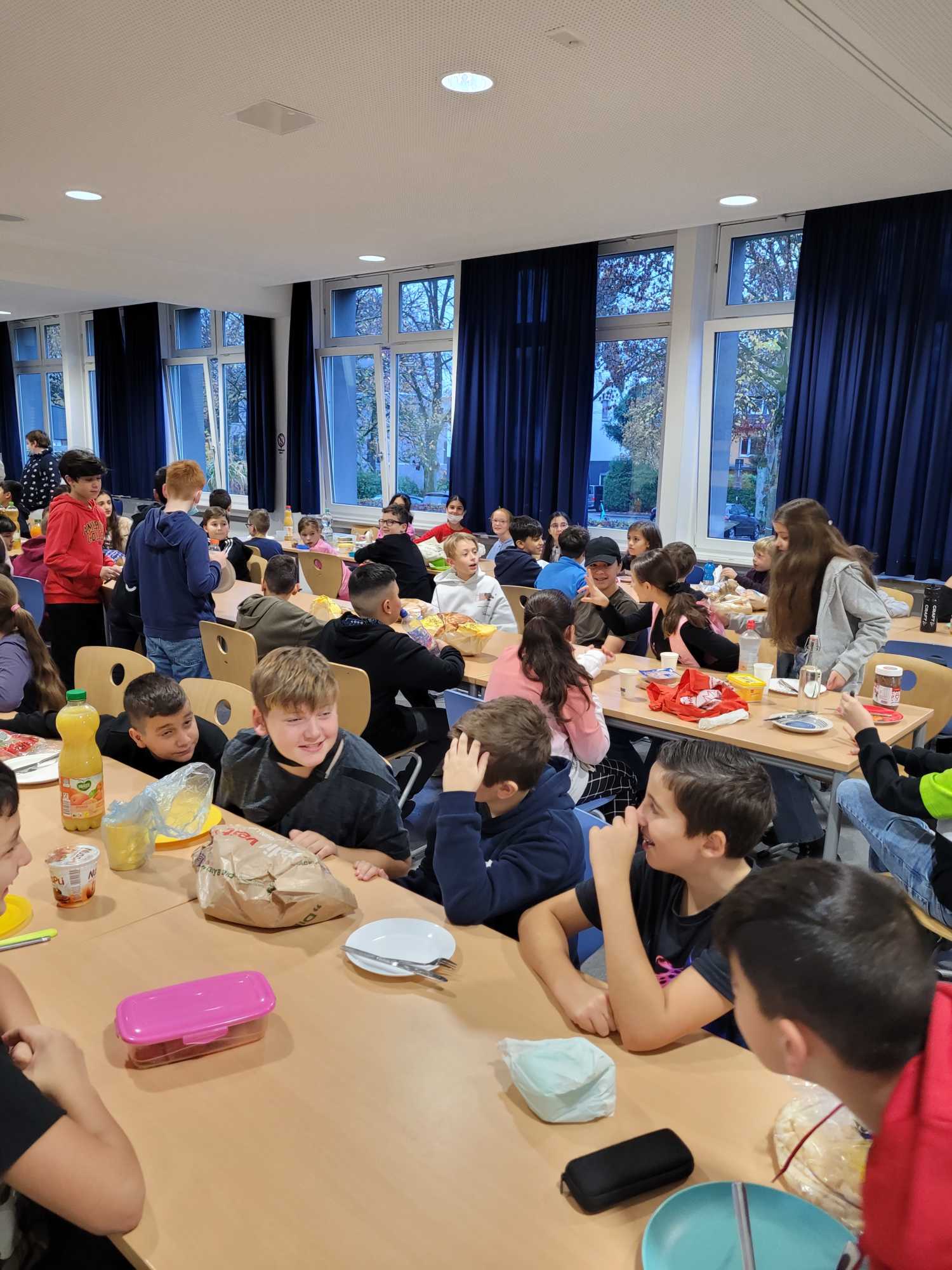 Unter dem Motto „Gemeinsam einzigartig!“ nahmen die 5. Klassen der WoBoGe auch in diesem Jahr am bundesweiten Vorlesetag teil. Am 18.11. starteten die Klassen 5.1, 5.3 und 5.4 mit einem gemeinsamen Frühstück in der Mensa. Alle Schüler*innen brachten eine Kleinigkeit für das Buffet mit, das alle satt und glücklich machte.