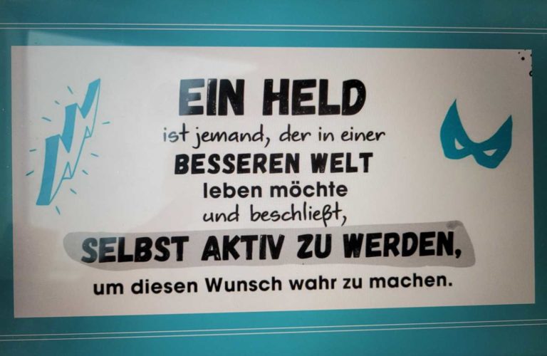 Die Fünftklässler*innen beschäftigten sich – wie auch in der Projektwoche – mit heldenhaftem Verhalten, das unsere Welt und ihre Bewohner einzigartig macht. Sie sollten dafür über eigene Träume und individuelles Verhalten nachdenken. Außerdem überlegten sie, wie sie heldenhafte, kleine, gute Taten gestalten können und formulierten dafür Komplimente. Bei der Station „Denk dir 100 Menschen“ lernten sie, wie unterschiedlich und ähnlich sich die Weltbevölkerung ist. Hierbei geht man davon aus, dass in einem Dorf 100 Menschen wohnen, die die Bewohner der Erde repräsentieren. Zur Unterstützung wurden die Ergebnisse „Unterschiede und Gemeinsamkeiten“ malerisch mit Hilfe von 100 Figuren festgehalten.