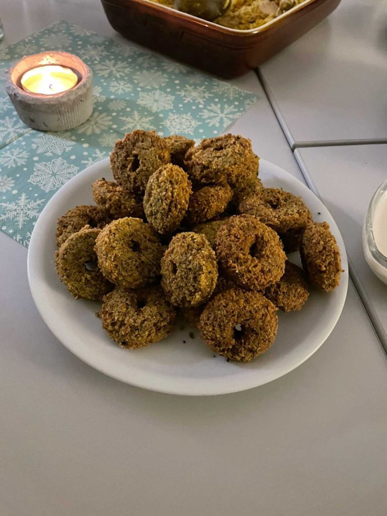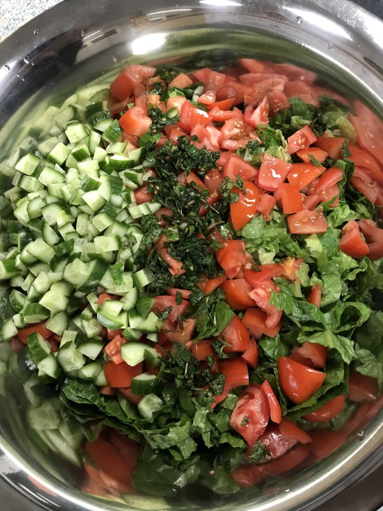 Der Tisch war reichlich gedeckt mit selbstgemachten Falafel, frischen Salaten und köstlichem Hähnchen mit Reis, der in Kohle gegart worden ist!