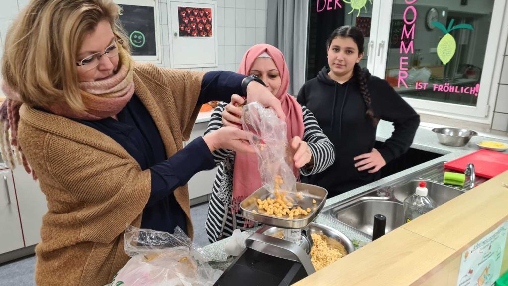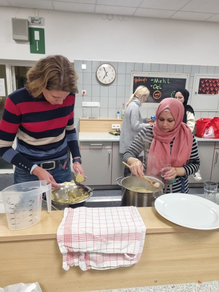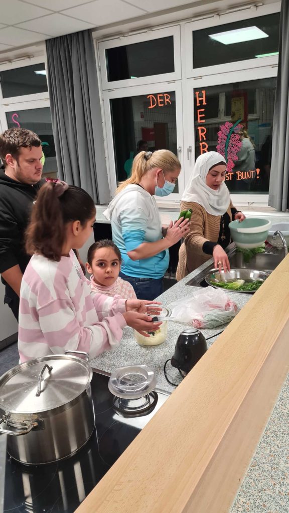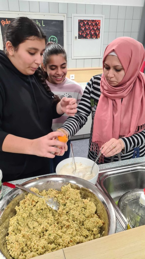 Beim ersten gemeinsamen Kochabend zauberten Eltern und Schüler*innen des 7. Jahrgangs zusammen mit Mitgliedern unseres Kollegiums ein arabisches Menü.