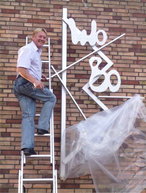 Die Großplastik aus Metall mit den Buchstaben WoBoGe ziert nun den Eingang des Hauptgebäudes am Beisinger Weg.