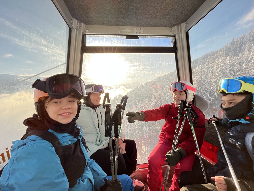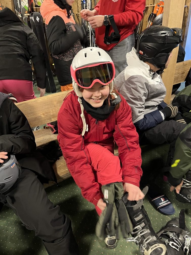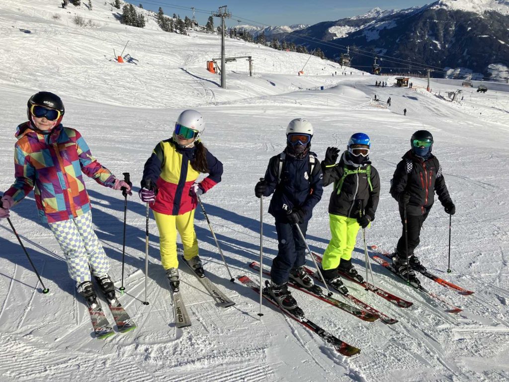 Nach den ersten Übungen zur Eingewöhnung am Anfängerhügel ging es ganz schnell: Die ersten kleinen Abfahrten im Schneepflug, die ersten Kurven, die ersten Liftfahrten und die ersten „richtigen“ Pisten. Die Lernkurve ging steil nach oben und alle konnten Skierfolge feiern. Jetzt gibt es viel Schneeaction bei bestem Wetter und gut präparierten Pisten.