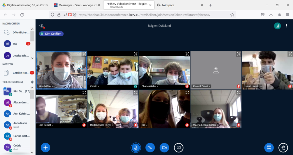 Also entschlossen wir uns gemeinsam, einen digitalen Austausch zu planen, damit wir trotzdem noch einmal in Kontakt treten konnten. Zunächst begonnen wir damit, gemeinsam Fragen zu sammeln, um die Jugendlichen aus Belgien über ihr Heimatland zu interviewen. Dies war für uns besonders wichtig, da der Sprachenstreit in Belgien eines der abiturrelevanten Themen ist. Darüber hinaus greifen wir das Thema „Belgien“ immer wieder im Niederländisch-Unterricht auf und konnten so noch viele andere Dinge erfragen oder diskutieren.